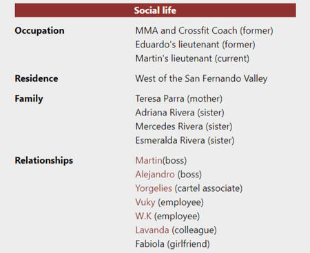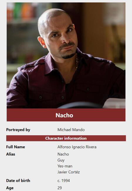 Alfonso Ignacio Rivera es un criminal de origen mexicano-estadounidense que trabaja como la mano dura de Martin Madrazo, siendo uno de los principales principios del Cartel de Juárez. Generalmente actúa como la voz del cartel para mediar los problemas y se encarga de la mercancía cuando Madrazo no está disponible.Nació en San Luis Potosí el 4 de febrero de 1994 pero vivió y se crío en Tijuana, Baja California. Su infancia se vio placada de problemas familiares, el padre de Ignacio vino de la República Dominicana, y trabajó como soldado pero abandonó la familia antes de que pudiera conocerlo, mientras que la madre, Teresa parra, mostraba poco cuidado o interés en Ignacio y sus hermanas. Como se desconocía el destino de su padre y su madre no era apta para criarlos, Nacho se encargó del cuidado de sus hermanas desde muy joven.Su hermana menor, Mercedes Rivera sufre de Diabetes tipo 1, lo que llevó a Ignacio, que en su mayoría actuó como tutor de sus hermanas, a incursionar en el mundo criminal para pagar las facturas médicas y las necesidades de cada una de ellas a principios del 2010.